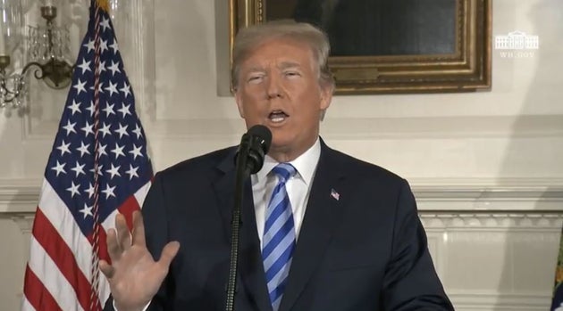 «Είναι ξεκάθαρο σε μένα ότι δεν μπορούμε να αποτρέψουμε μια ιρανική πυρηνική βόμβα υπό την υπό σήψη και αποσύνθεση δομή της παρούσας συμφωνίας. Η συμφωνία είναι ελαττωματική στον πυρήνα της. Αν δεν κάνουμε κάτι, ξέρουμε ακριβώς τι θα συμβεί. Οπότε, ανακοινώνω σήμερα πως οι ΗΠΑ θα αποσυρθούν από την πυρηνική συμφωνία με το Ιράν» είπε, και τόνισε πως ο ίδιος θα υπογράψει διάταγμα για επαναφορά των κυρώσεων των ΗΠα. «Θα επιβάλουμε οικονομικές κυρώσεις του υψίστου είδους» είπε, προσθέτοντας ότι όποιοι συνεργαστούν με το Ιράν θα υποστούν και αυτοί κυρώσεις.