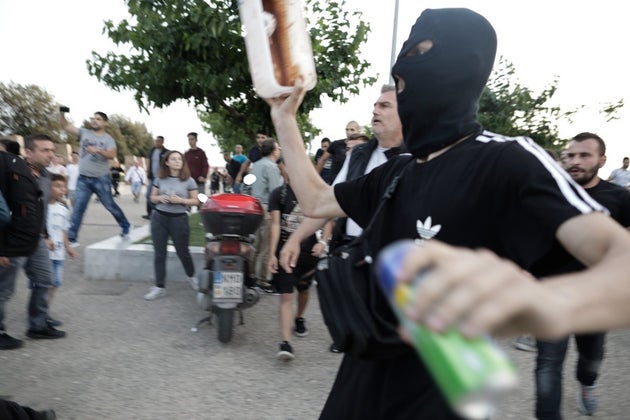 Όπως γράφει μάλιστα και φαίνεται και το βίντεο του Thessnews.gr οι δράστες ήταν εκσφενδόνιζαν μπουκάλια και άρχισαν να ρίχνουν μπουνιές και να κλωσούν.